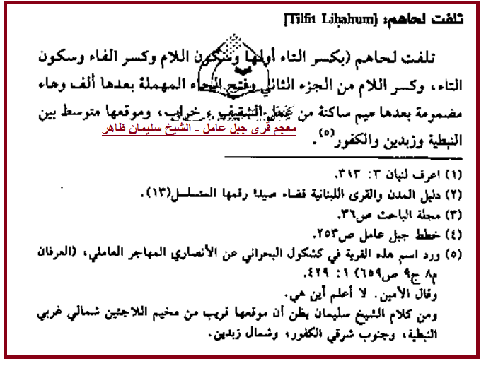 النص كما ورد في معجم قرى جبل عامل بتحقيق جمعية الإمام الصادق